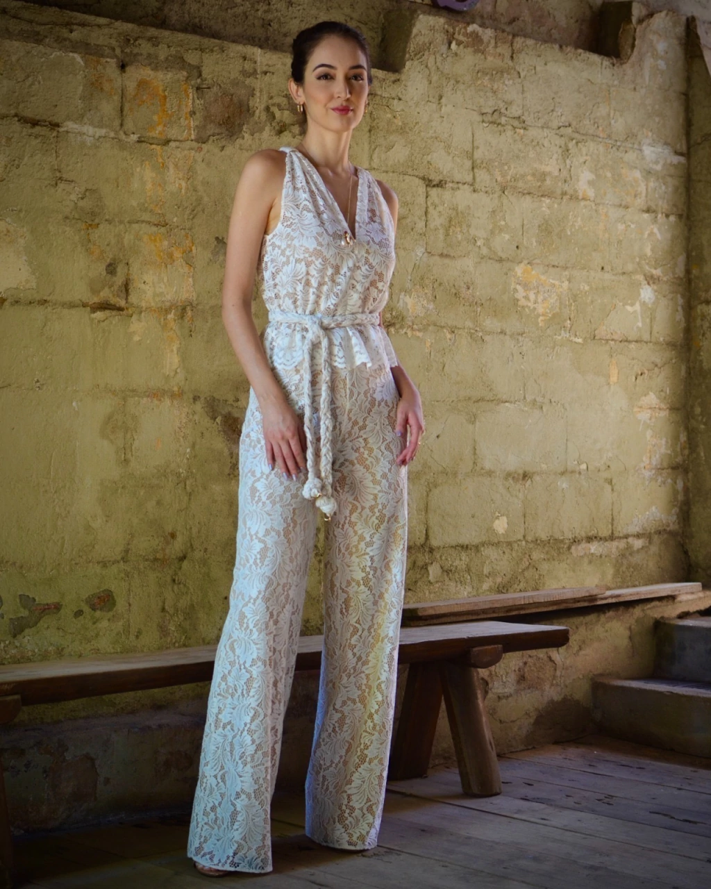 Calça Pantalona Renda - Eleve seu estilo com esta deslumbrante calça pantalona, confeccionada em renda branca com um elegante forro bege. O modelo possui um elástico largo na cintura, proporcionando conforto e um ajuste perfeito. Ideal para criar looks sofisticados, essa peça é perfeita para eventos especiais ou para dar um toque de charme ao seu dia a dia.